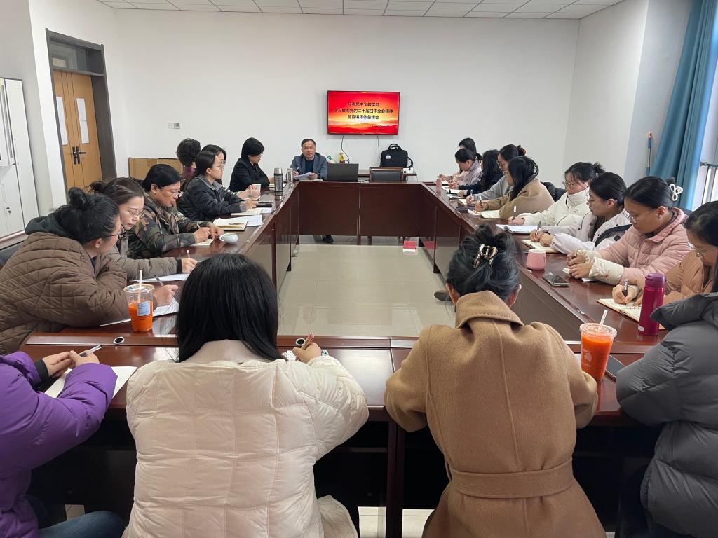 为深入学习宣传贯彻党的二十届四中全会精神, 11月20日,马克思主义教学部在日新楼党员活动室举行全会精神宣讲团集体备课会。宣讲团全体成员及部分思政课教师参加。
